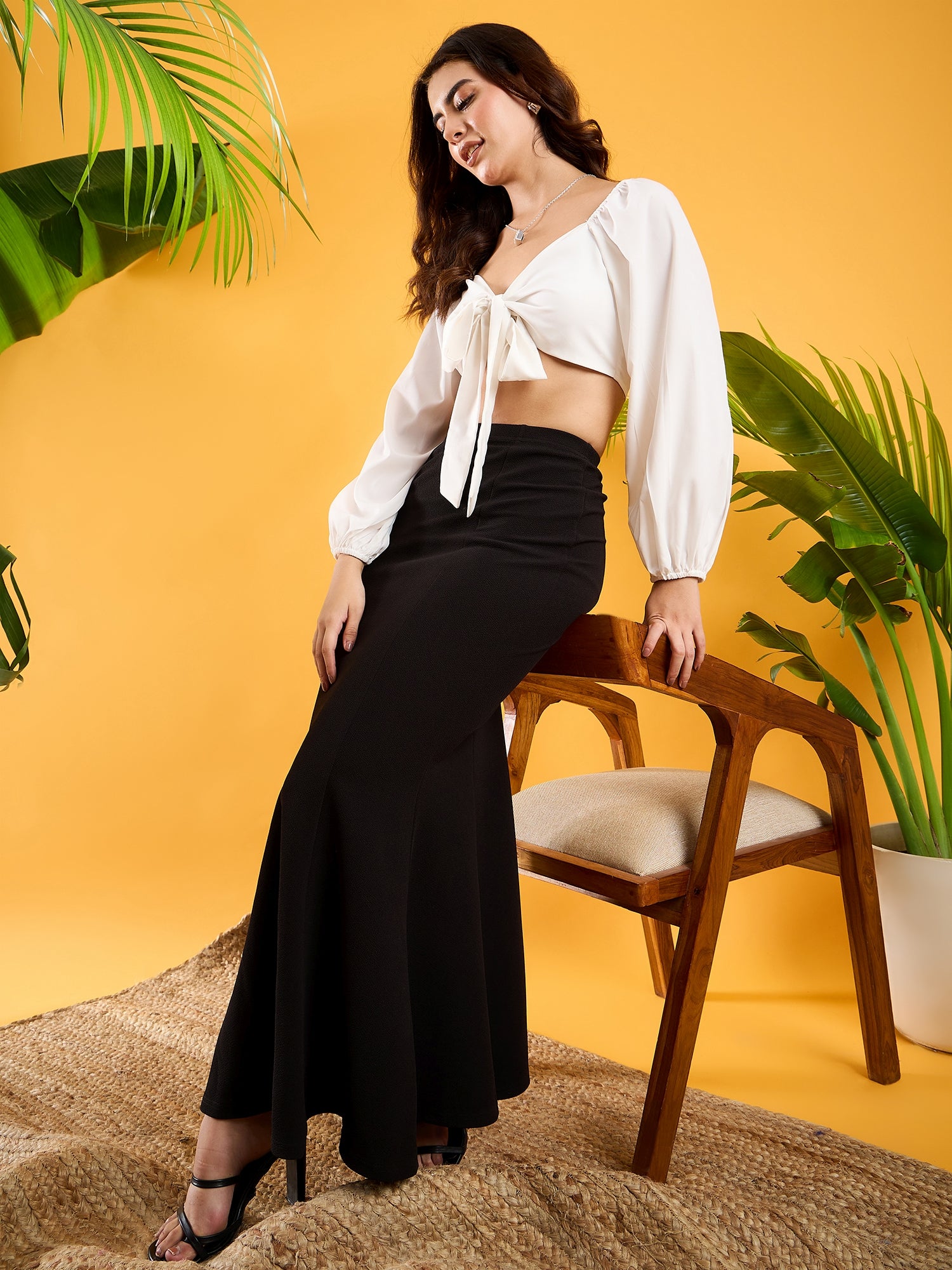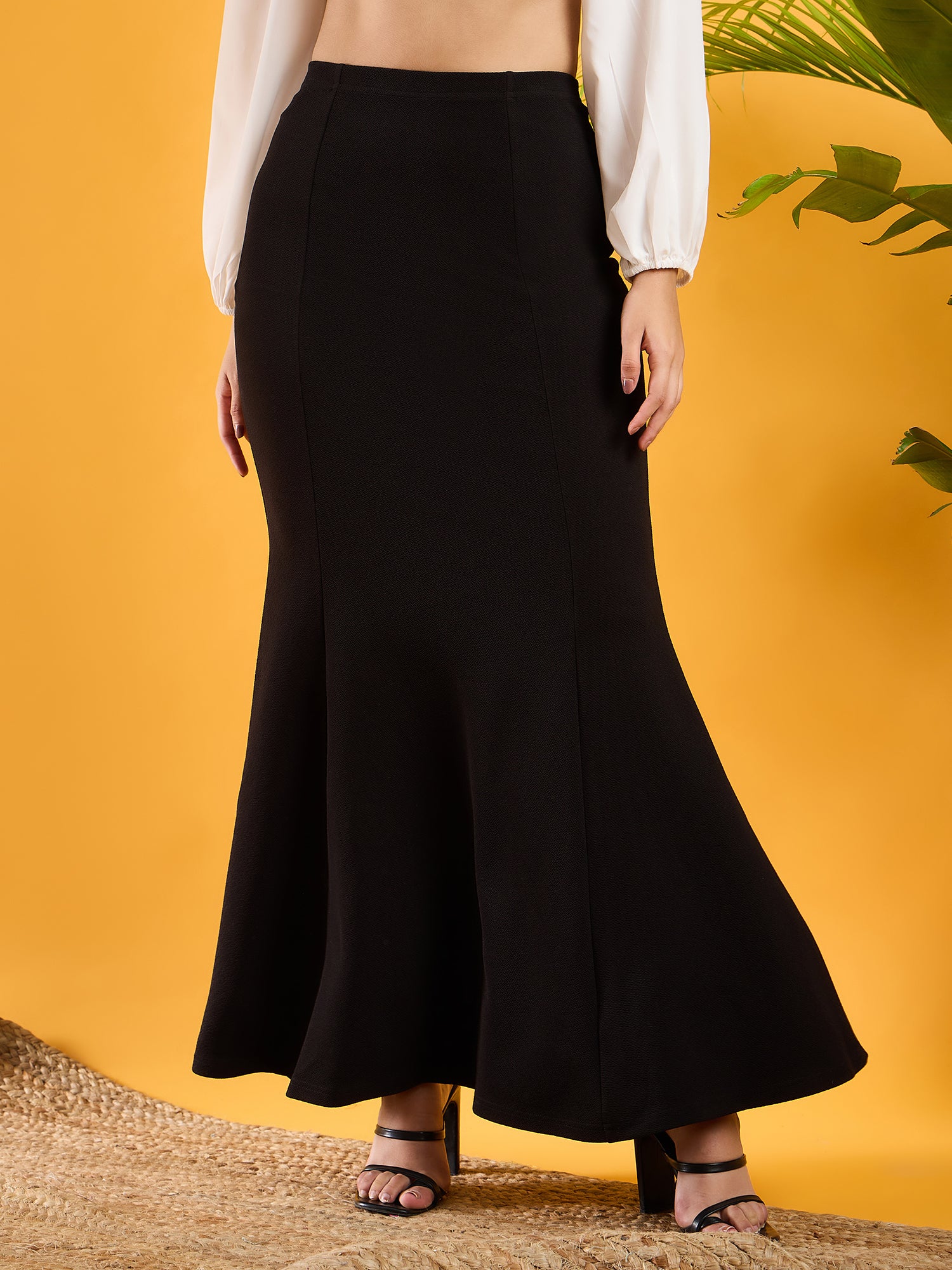 Introducing the Berrylush Solid Black Maxi Skirt – your new go-to for every upscale gathering. Crafted with luxurious knitted polyester fabric, this skirt exudes elegance with its sleek solid black colour and flutter hemline. Designed for effortless wear, it features a slip-on style and high-rise waist, ensuring both comfort and an impeccable fit. The A-line silhouette flatters every figure while maintaining opaqueness for peace of mind throughout any event. Perfectly suited for parties or evening outings where you want to make a sophisticated statement without compromising on comfort.