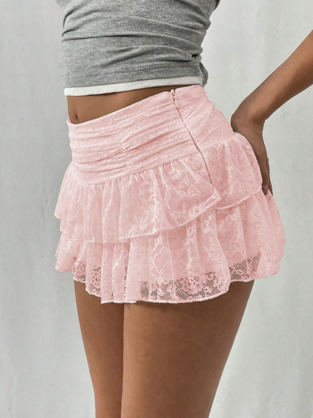 Step into effortless elegance with the Solid Pink High-Rise Waist Cotton Blend Concealed Zipper-Up Lace Ruffled A-Line Mini Skirt from Berrylush. This charming piece combines playful femininity with sophisticated styling, making it the perfect choice for casual outings or laid-back brunches. Crafted from a comfortable cotton blend, this skirt features a flattering high-rise waist that enhances your silhouette while offering all-day comfort. The delightful lace detailing and ruffled surface styling add an enchanting touch to its solid pink hue, creating an eye-catching statement wherever you go. Designed with convenience in mind, the concealed zipper closure ensures a seamless look without sacrificing ease of wear. With its flared hemline and lined interior for added opacity, this mini skirt is destined to become your go-to favorite! Pair it effortlessly with sandals or sneakers for a relaxed yet chic ensemble that radiates confidence and charm at every turn.